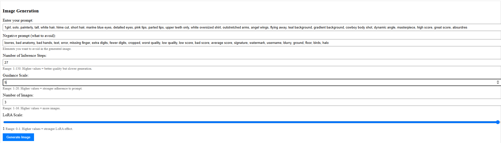 Then after filling in prompts/input-values and clicking on “Generate Image”…